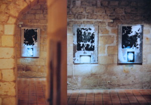Sans discours ni trompettes.. mais avec clair-obscur, air léger et surfaces agitées, galerie Autrepart, Tours, nov.2003.